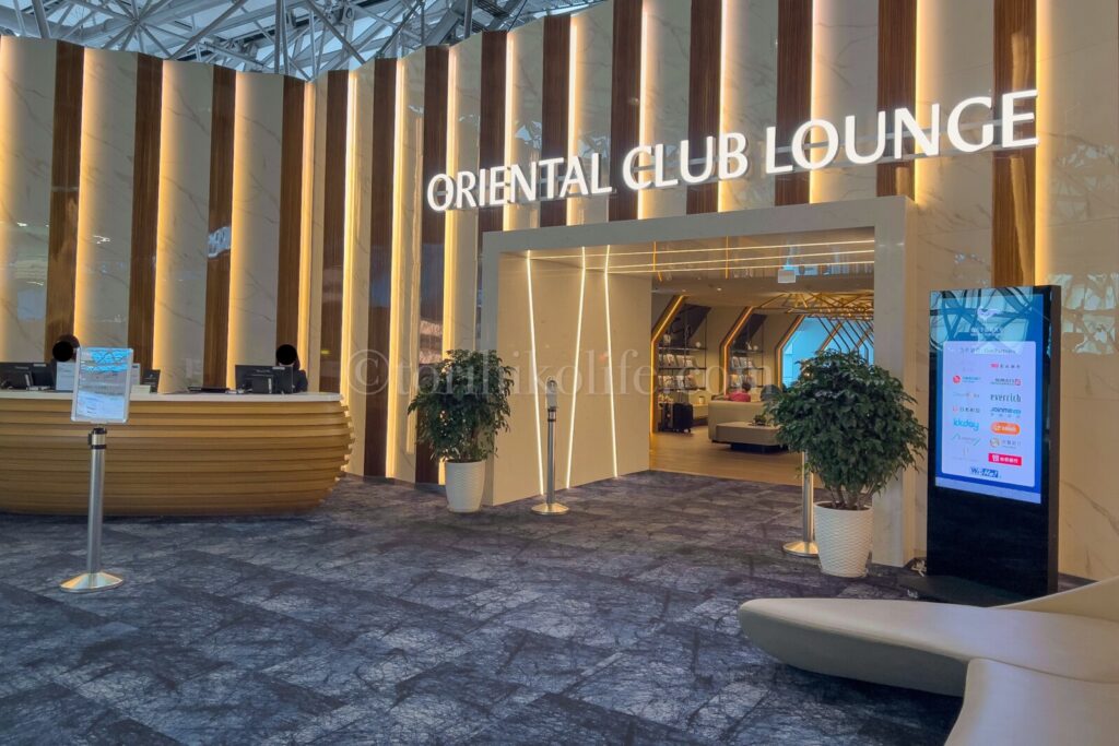 オリエンタルクラブラウンジの正面に位置しており、案内板に従えば迷わずたどり着けます。プライオリティパスで利用でき、利用時間は通常2時間までで営業時間は毎日5:00〜23:00です。